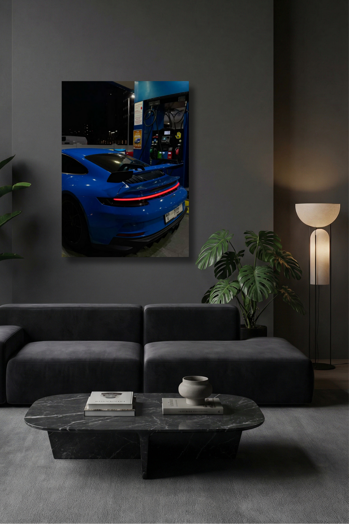 Unsere Bilder bestehen aus hochwertigem Acrylglas mit carbonähnlichem Hintergrund – edel im Look, ultraleicht im Gewicht. Präzise integrierte LED-Streifen sorgen für einen realistischen 3D-Effekt, bei dem das Licht wie echte Scheinwerfer wirkt.